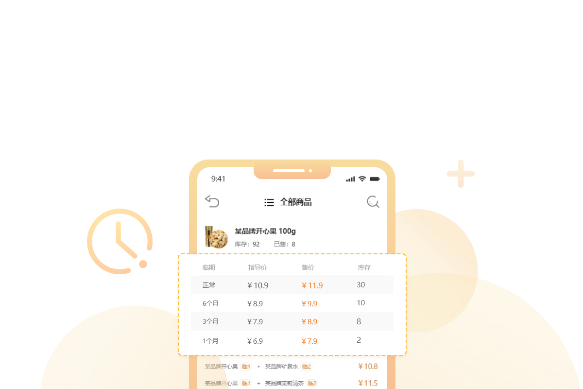 独家打造:商品消费期限管理 基于专业的消费期限管理系统,您可以为有使用期限的商品制定多个临期方案,并进行商品库存和价格管理