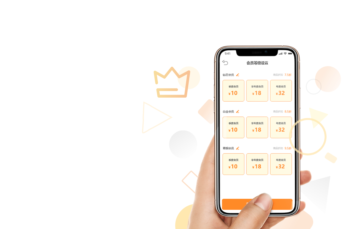 可自定义的会员充值方案 您可以设置会员充值方案,消费者购买会员后可享受商品打折优惠,